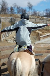 Vi legger vekt på å gi elevene kunnskap og ferdighetstrening i ridning og håndtering av hest basert på forståelse av hestens natur. Det vil bli baneridning, elementær ridelære og terrengridning i området rundt gården. Vi deler inn i ridegrupper etter deltakernes ferdigheter. Du vil også få være med på geitemelking, kos og stell med husdyra våre, historiefortelling, besøk hos fjellrev og reinsdyr og se gaupe og ulv på nært hold